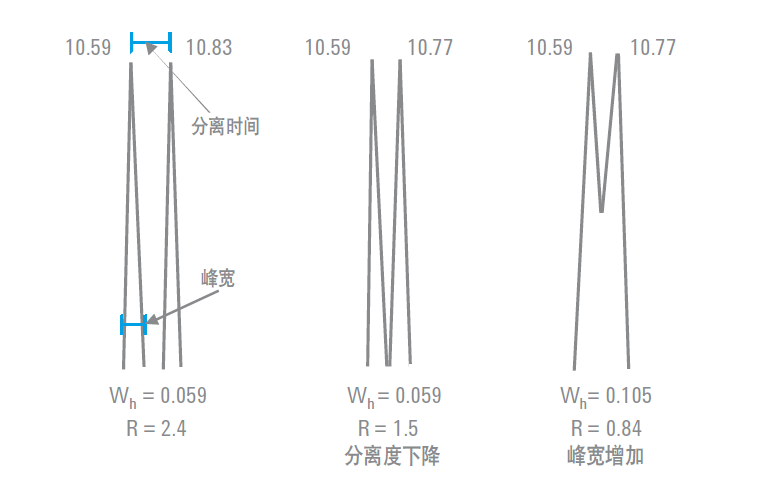 分离度是色谱图中相邻两峰的分离程度,直接表征目标化合物在色谱柱中的分离效果,分离度异常会影响定性与定量准确性。